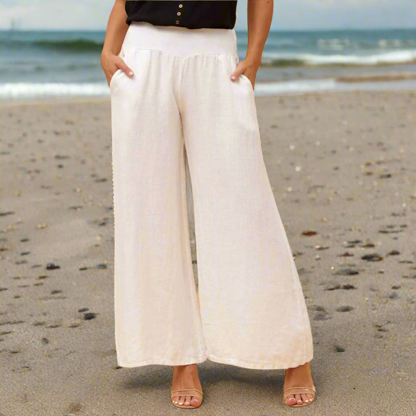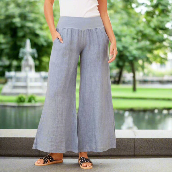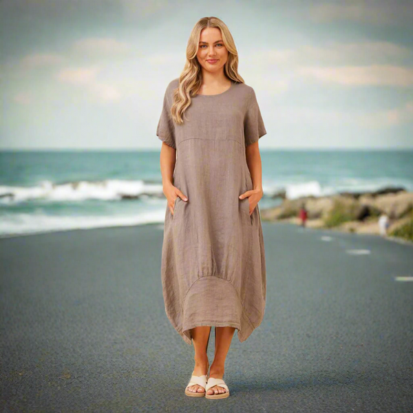 Customers appreciate Bottega Moda for its flattering cuts, breathable, soft Italian linen, and designs that transition easily from casual to dressy occasions