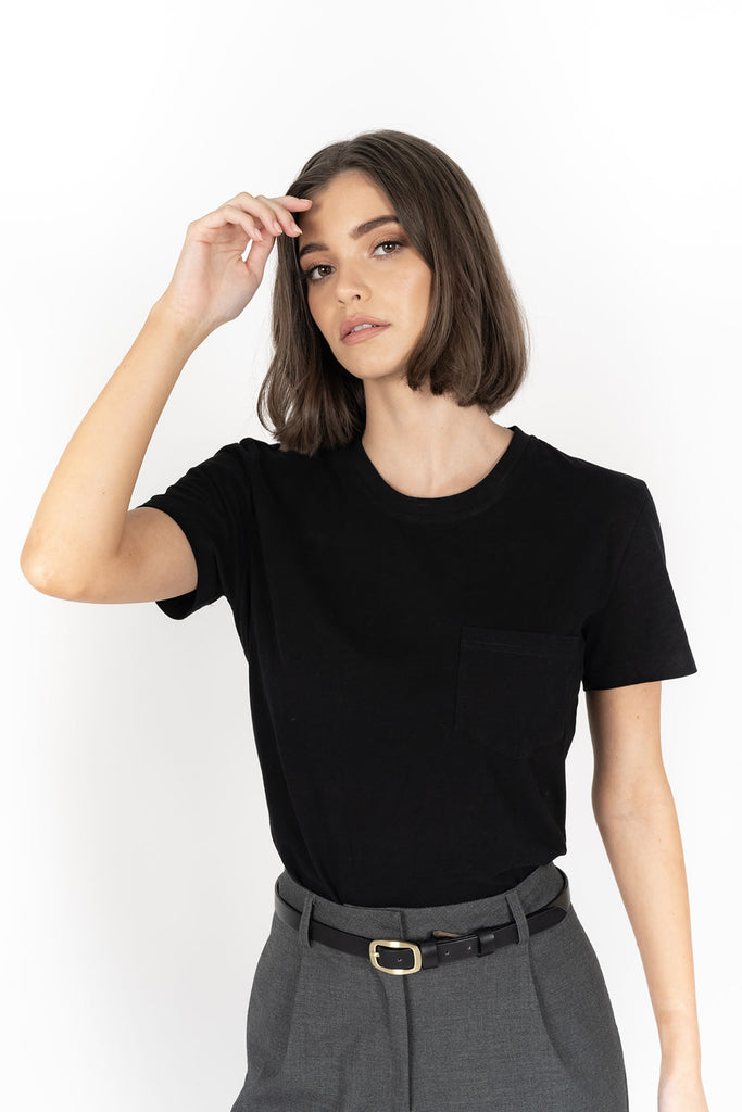 It’s all in the name- that perfect tee that you will cherish forever. Crafted from 100% buttery soft midweight cotton, the Forever tee feels beautiful on the skin. Featuring a cute patch pocket detail at the front, this tee will go with just about any outfit- you’ll be reaching for her again and again, forever.  She’s perfect for layering under your winter jackets/ coats. We’ve paired her here with our Cosmo Skirt. Available in 3 great basic colours – enjoy!