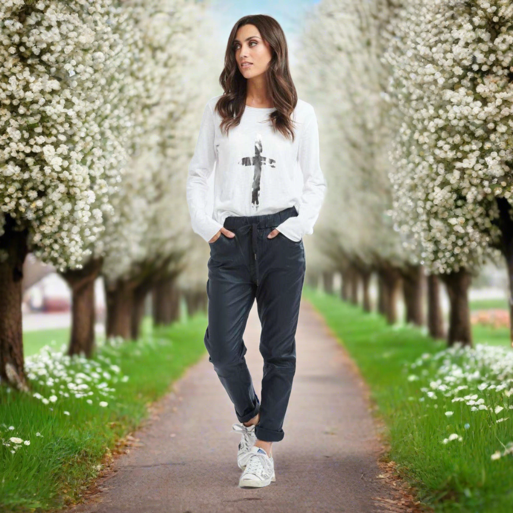 The Hot Cross Long Sleeve Top is designed for a stylish, casual look with a touch of sparkle. It's made of lightweight cotton and features a raw edge around the neck. Imported from Italy and backed by Italian Star's renowned quality, the top pairs perfectly with your favourite jeans.