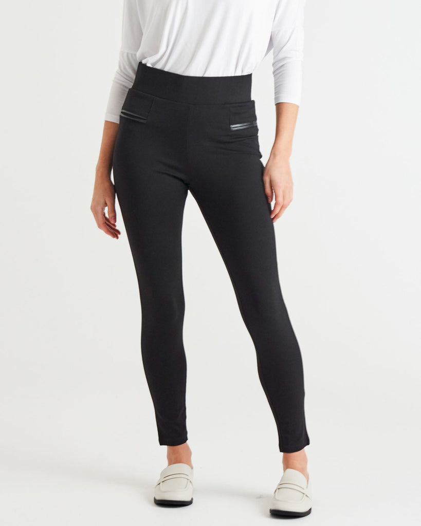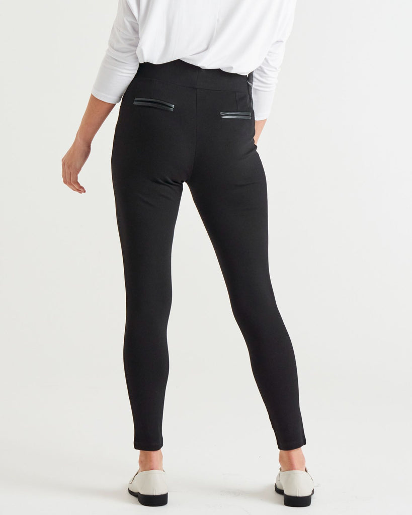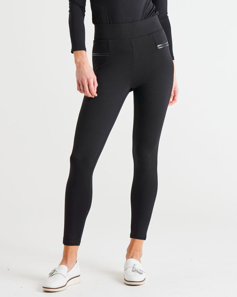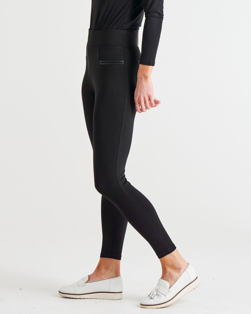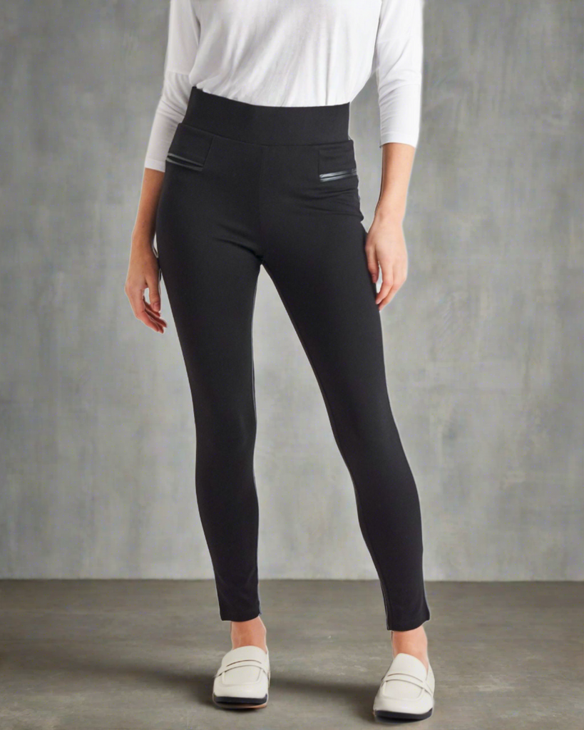 The Gwen Ponte Legging is your ultimate blend of style and comfort! Featuring a mid-high rise and elasticated flat front waist, these leggings offer the perfect balance of support and flexibility. The skinny leg design is flattering and versatile, while the stretch fabric ensures all-day comfort. Whether you're lounging at home or hitting the town, these leggings have got you covered in both fashion and comfort. Say hello to your trusted go-to piece!