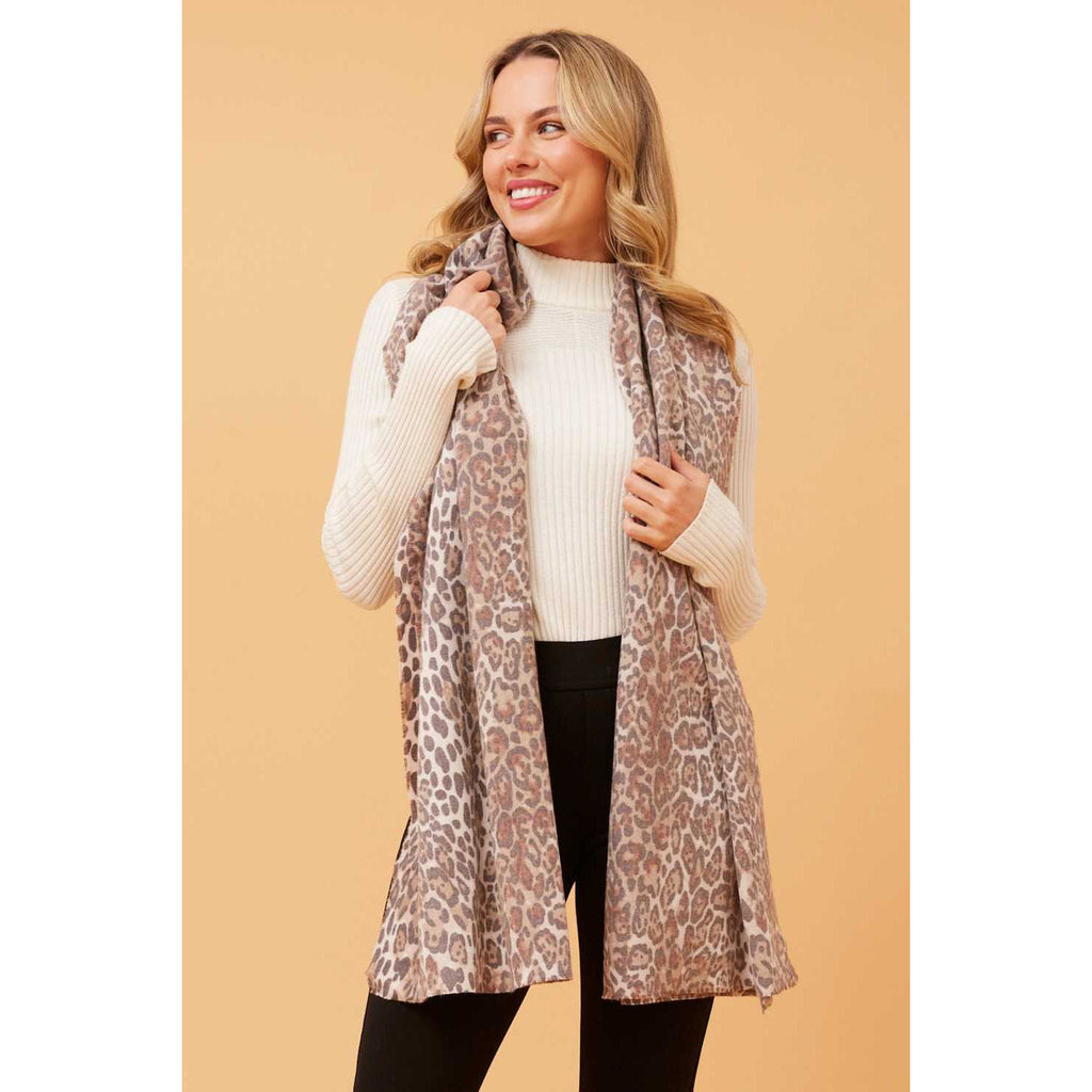 Indulge in luxury with our Animal Print Scarf in Tan. The elegant animal print adds a touch of sophistication to any outfit. Made with the finest material, this scarf is soft to the touch and adds a subtle touch of elegance to your wardrobe. Perfect for any occasion, this scarf is a must-have for any fashion-forward individual.